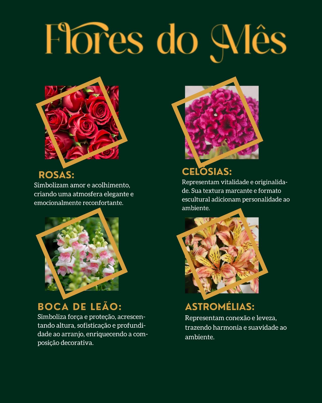 As flores deste mês foram escolhidas para levar equilíbrio, beleza e bem-estar à sua casa. Cada espécie contribui de forma única para valorizar a decoração e transformar o ambiente: